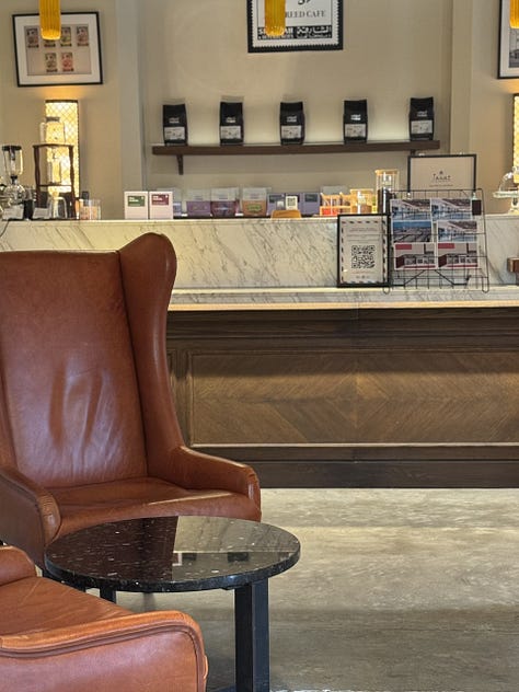 Iar când deschizi ochii e liniște. Timpul nu te mai grăbește nicăieri. Ești doar tu la o cafea. Cred că Al Bareed Café este prima cafenea în care am băut câte o cafea și am mâncat ceva dulce în trei locuri diferite, la aceeași vizită.