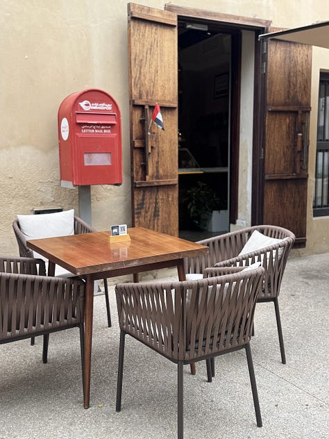 Tot aici este și Al Bareed Café, o cafenea deschisă în primul oficiu poștal din Sharjah, și unde m-am „pierdut” timp de câteva ore la o cafea.