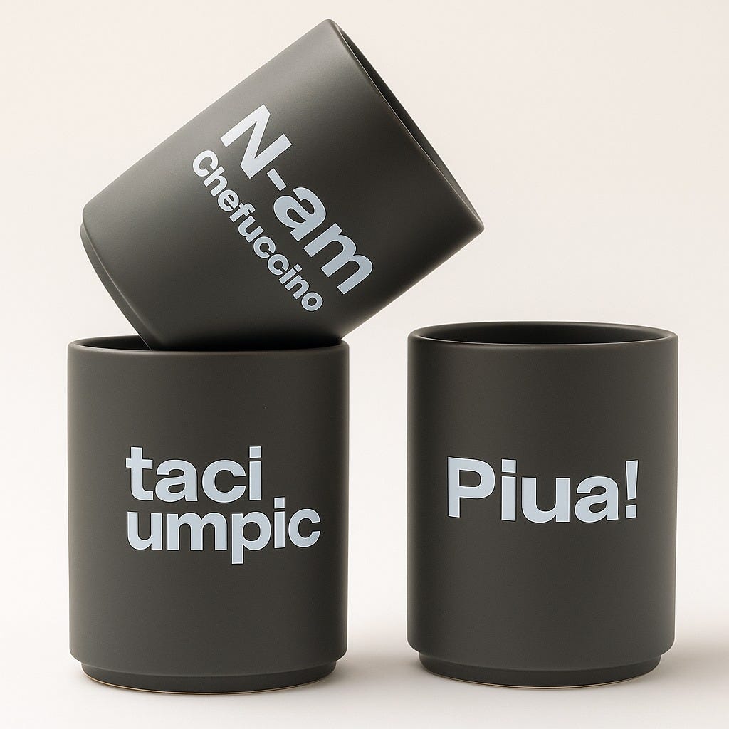 • n-am chefuccino - Autoironie pentru zilele „nu azi”. Ține lumea la distanță cu umor, fără explicații lungi. Perfectă la birou sau acasă, când vrei să bei cafeaua în pace.
