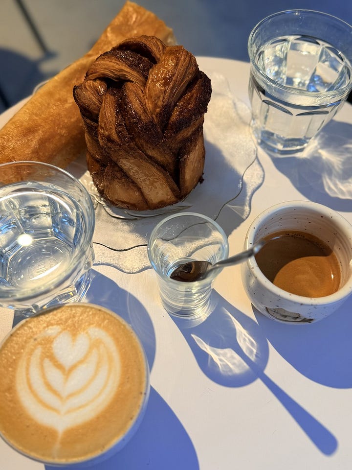 Mai aveau pe râșniță și o Brazilia Minas Gerais de la Garage Cafe, dar au și cafea de la Guido, dacă vrei să-ți refaci și stocul pentru acasă. Ca de obicei, le-am încercat cu și fără lapte, iar lângă ele a mers perfect un melc cu cardamom, care este în acest moment plăcerea mea mai mult sau mai puțin vinovată. 😎